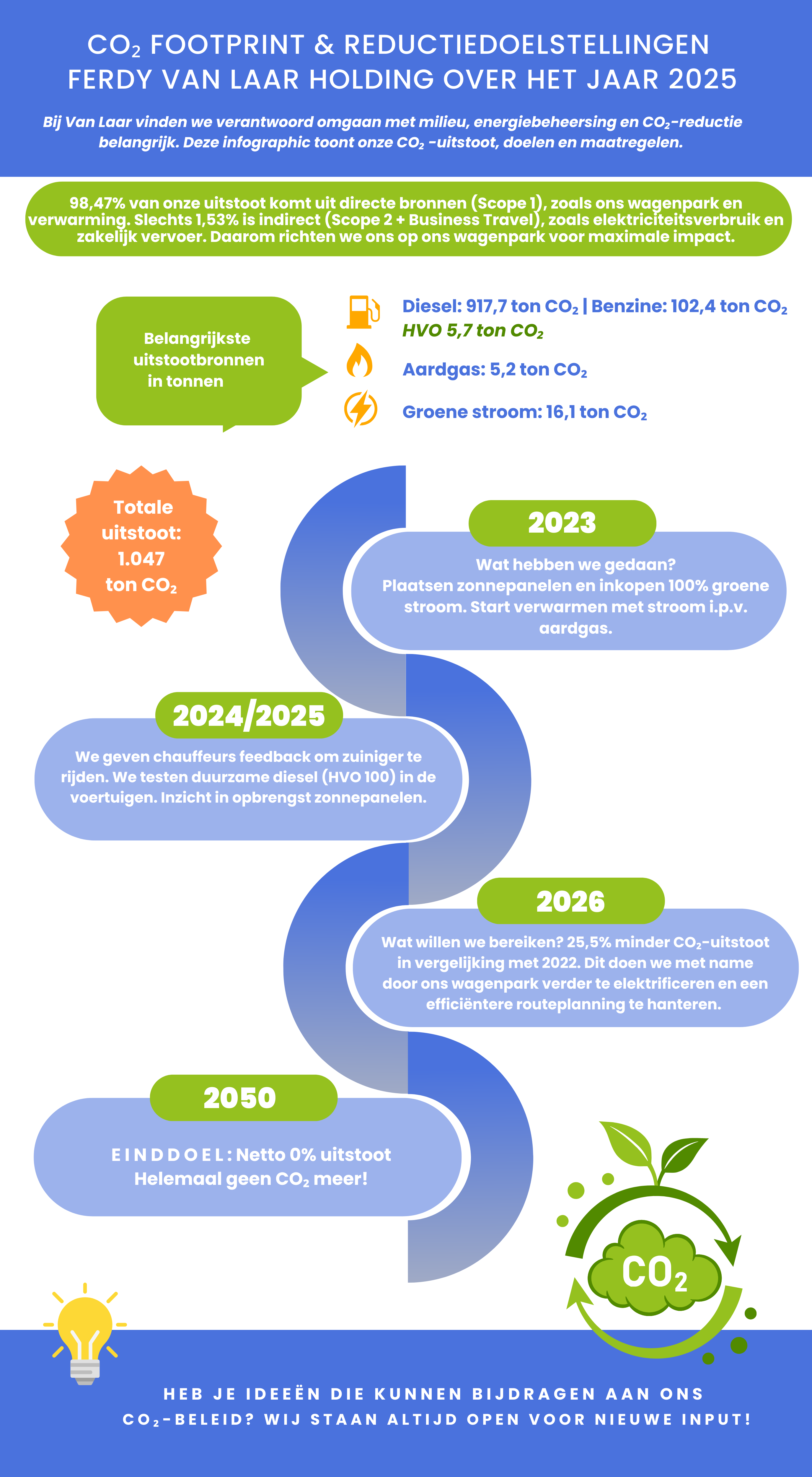 We zetten de CO2-prestatieladder in als een nuttig hulpmiddel om onze doelen te evalueren en praktisch uitvoerbaar te maken. Dit bereiken we door in de loop der tijd besparingsplannen op te stellen. Hierdoor houden we het gebruik van de ladder helder en gemakkelijk toepasbaar. Het zorgt ervoor dat we dagelijks bewust bezig zijn met onze impact op het milieu. We delen actief onze CO2-footprint en ons stappenplan van de CO2-prestatieladder, omdat we het cruciaal vinden deze informatie te delen met onze opdrachtgevers, onderaannemers en onze eigen medewerkers. Uiteindelijk proberen we door deze openheid andere bedrijven in onze branche te inspireren en aan te moedigen om ons voorbeeld te volgen.